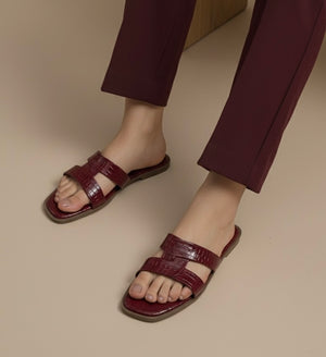 Step into refined style with meesh croc flats, your new essential for sophisticated daily wear. Crafted for the woman who demands both luxury and ease, this flat slide features a chic, contemporary square-toe silhouette and a sophisticated double-strap design.
