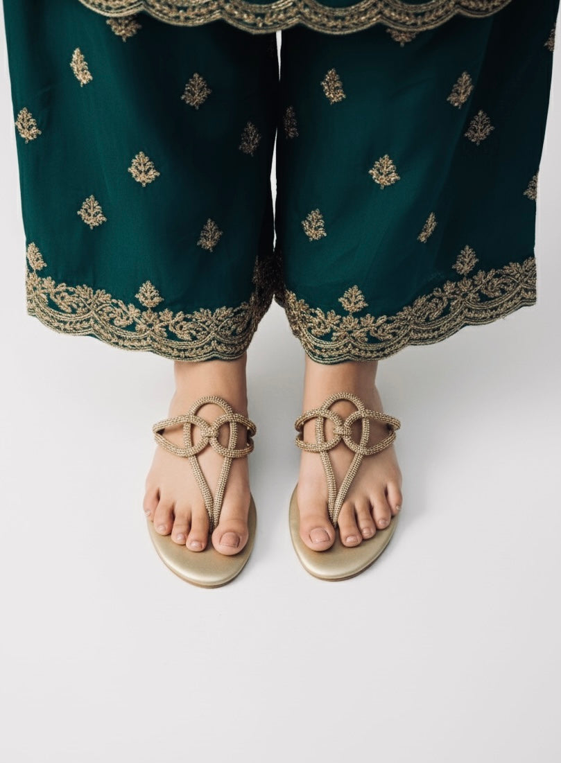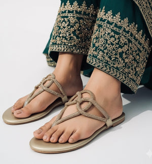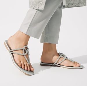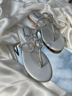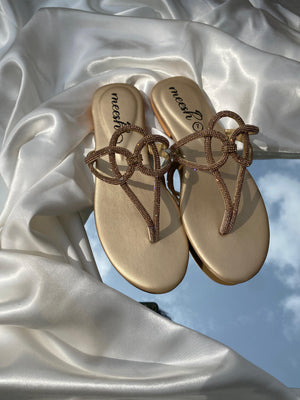 Sparkle and shine with every step in our Starlight Glam Embellished Flats. Designed to turn heads, these stunning sandals feature an intricate, looping strap adorned with shimmering crystals, creating an effect as radiant as a starry night. Perfect for adding a touch of glamour to your evening wear or elevating your daytime chic.