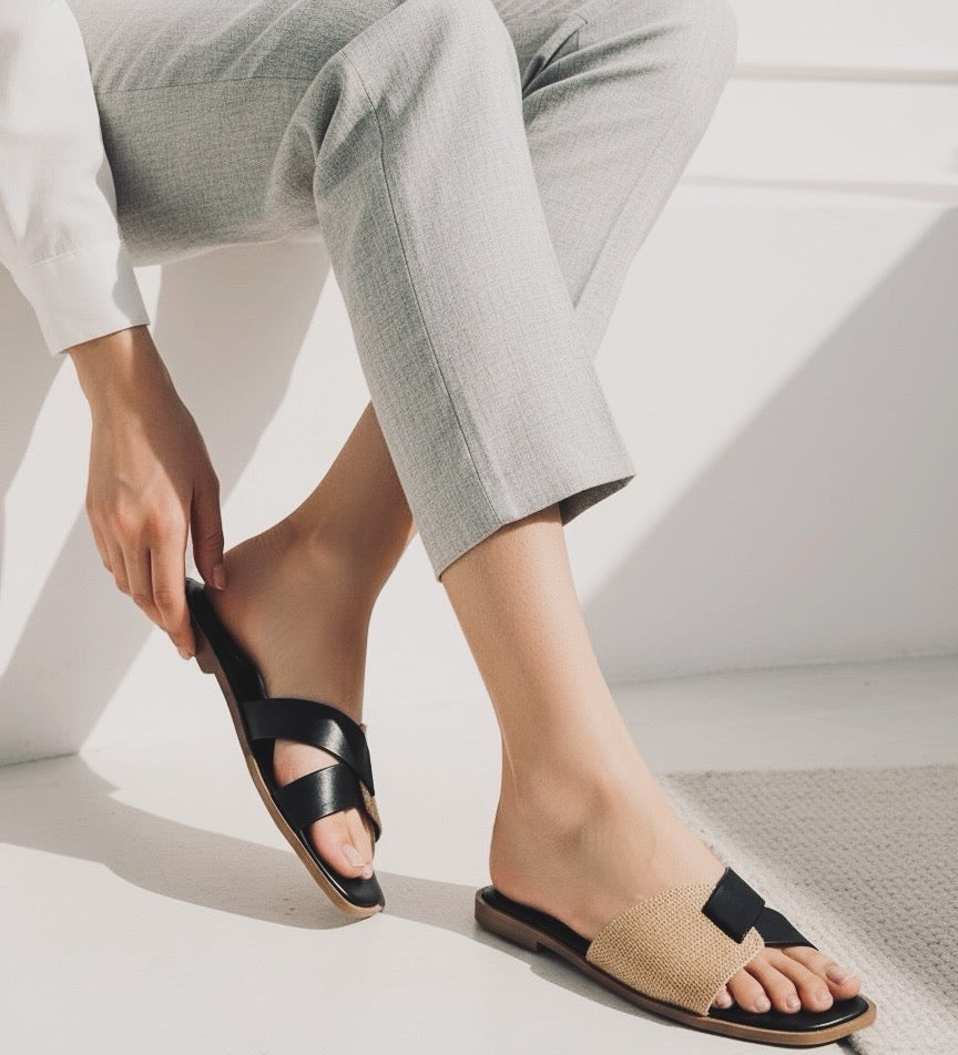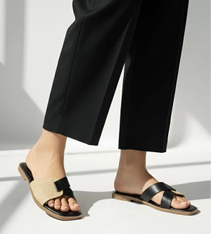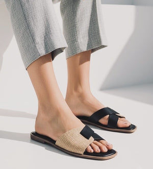 Design: Woven cross-strap blend of texture and comfort