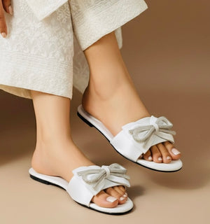 Versatile. Elegant. Effortless. Our Moonlit Bow Flats are made for the girl who moves between eastern and western looks with ease. Featuring a soft moon-white base and a delicate bow detail, these flats bring charm to any outfit — from jeans and tops to flowy kurtas or festive wear.